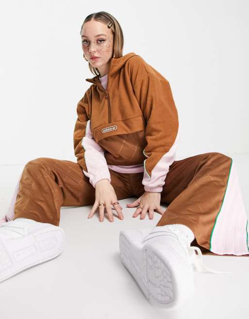 adidas Originals Retro Couture hoodie in brown and pink with monogram print Very well made.