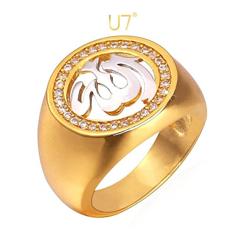 U7 Muslim Allah Ring Platinum 18K Gold Plated AAA Cubic Zirconia Very well made.