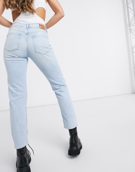 Pepe Jeans Mary high rise distressed straight leg jeans in light wash blue Very well made.