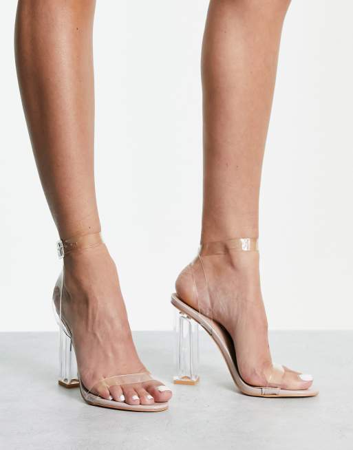 Public Desire ALIA STRAPPY PERSPEX HIGH HEELS CLEAR NUDE Size UK 4 Very well made.