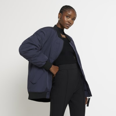 Morven Men s Dark Navy Blue River Island Dynamic Fit Bomber Coat Very well made.