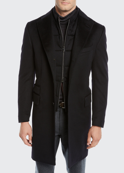 Corneliani Id Wool Topcoat With Zip out Bib In Black ModeSens Very well made.